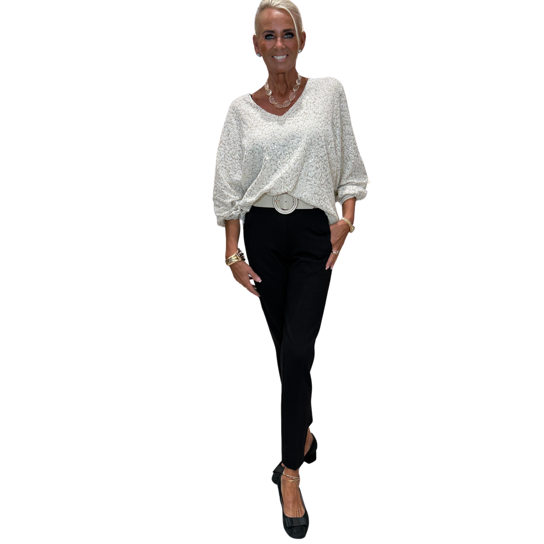 Ljós toppur með síðum ermum og v-hálsmáli